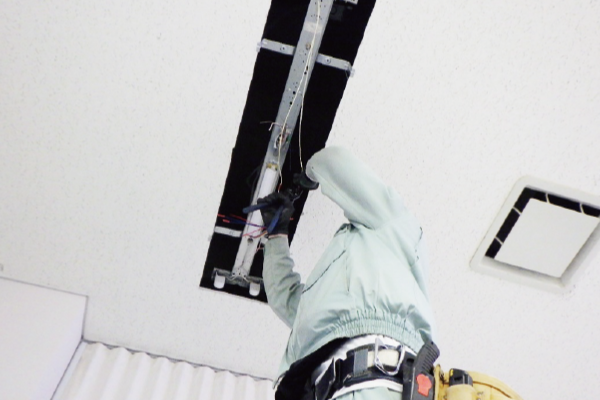 仕事内容 新築アパートなどの各種電気工事を行います。その他にも工場での空調や消防設備点検なども行います。